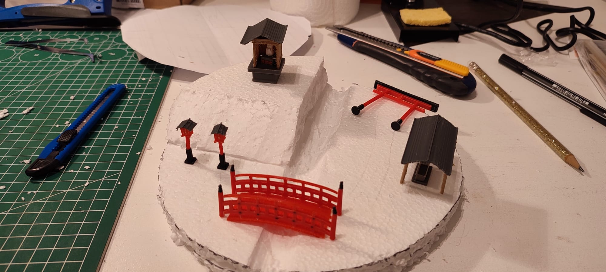 Après trois semaines passées au Japon, je voulais immortaliser mes souvenirs du voyage avec un diorama. Un projet ambitieux puisque c'est la première fois que je me lance dans la création d'un diorama extérieur, et sans être guidé.