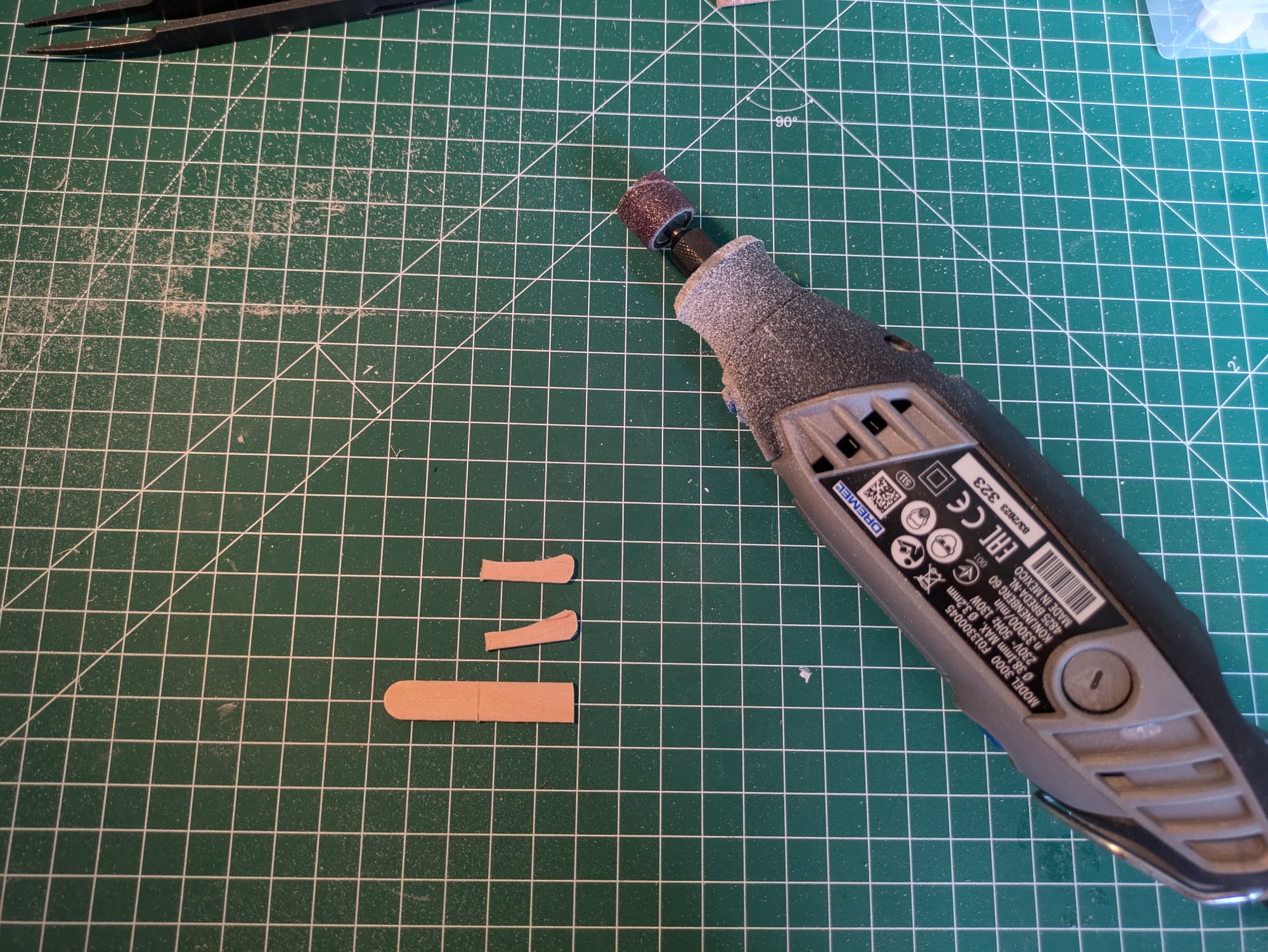 Pour les pieds de la table, j'ai utilisé la Dremel pour faire un joli arrondi sur le bas, puis peint avec la même couleur que le reste du bois. J'aurai aussi bien pu faire avec le cutter mais je voulais tester la Dremel.