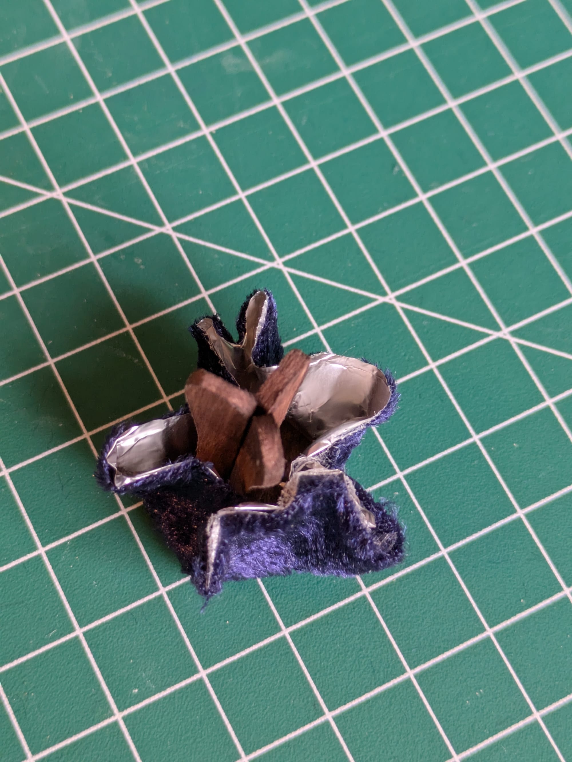 J'ai imprimé le chaudron en 3D et l'ai rempli de colle chaude pour représenter le liquide dedans. ⚠️ Attention, la colle chaude est tellement chaude qu'elle a ramollit le PLA du chaudron qui s'est un peu déformé dans le processus. Ensuite le chaudron a été un peu coloré en doré et l'intérieur en vert.